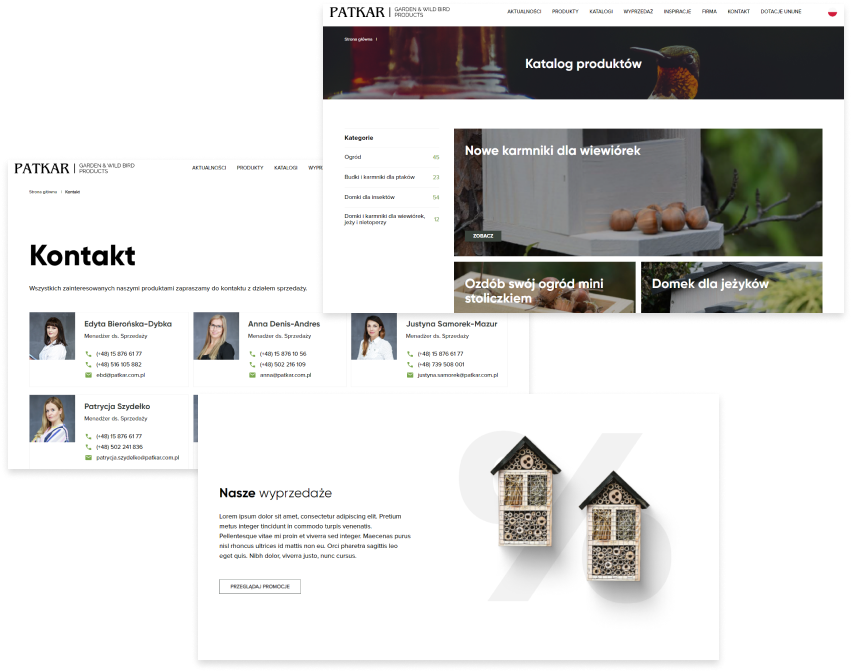 Sklep internetowy Patkar został zbudowany w całości pod wymagania klienta. Rozbudowany moduł sprzedaży oddziela konta B2B od kont B2C dając ogromne możliwości personalizacji grup sprzedażowych. Negocjacje cenowe, systemy wymiany danych oraz integracje sprawiają, że sklep jest niezwykle nowoczesnym systemem sprzedaży oraz pełni funkcję profesjonalnej strony www.